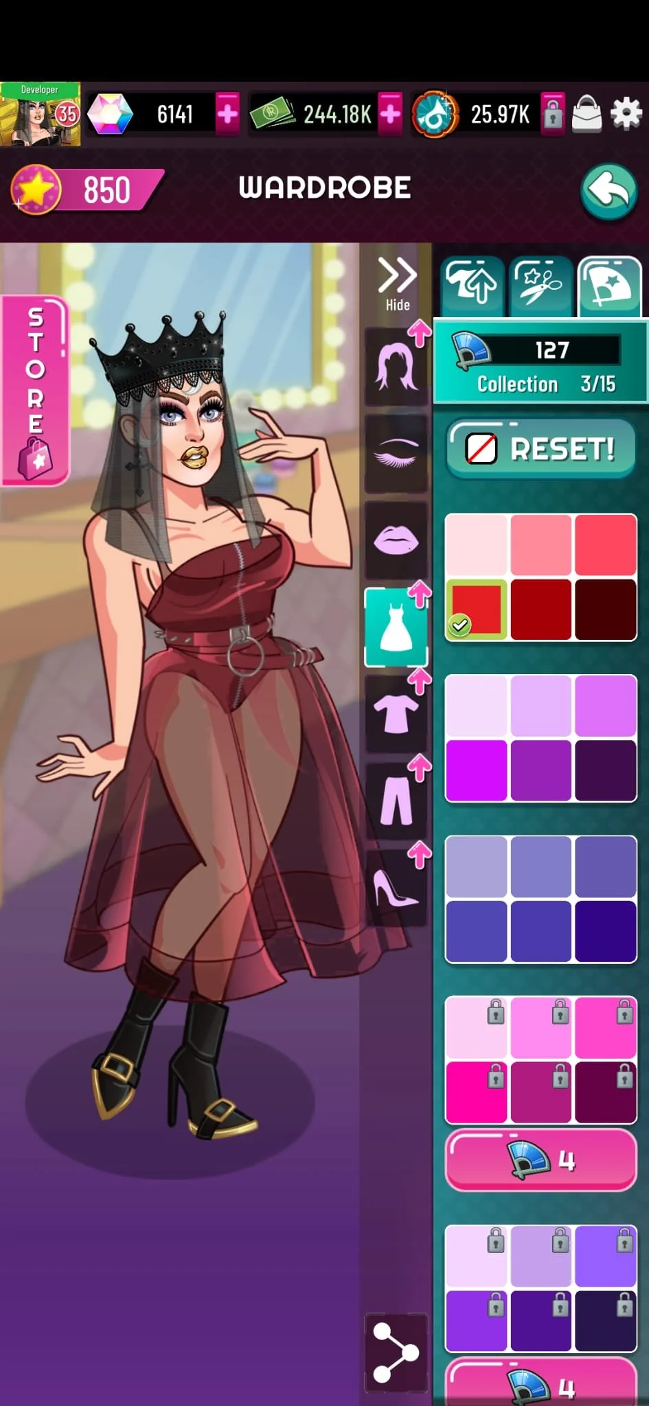 A later feature added to the game was RuColor (recoloring), which allowed players to customize all drag pieces using a variety of basic palettes. This system was designed to be scalable, with the potential to include animated prints and unique, sellable color packs.