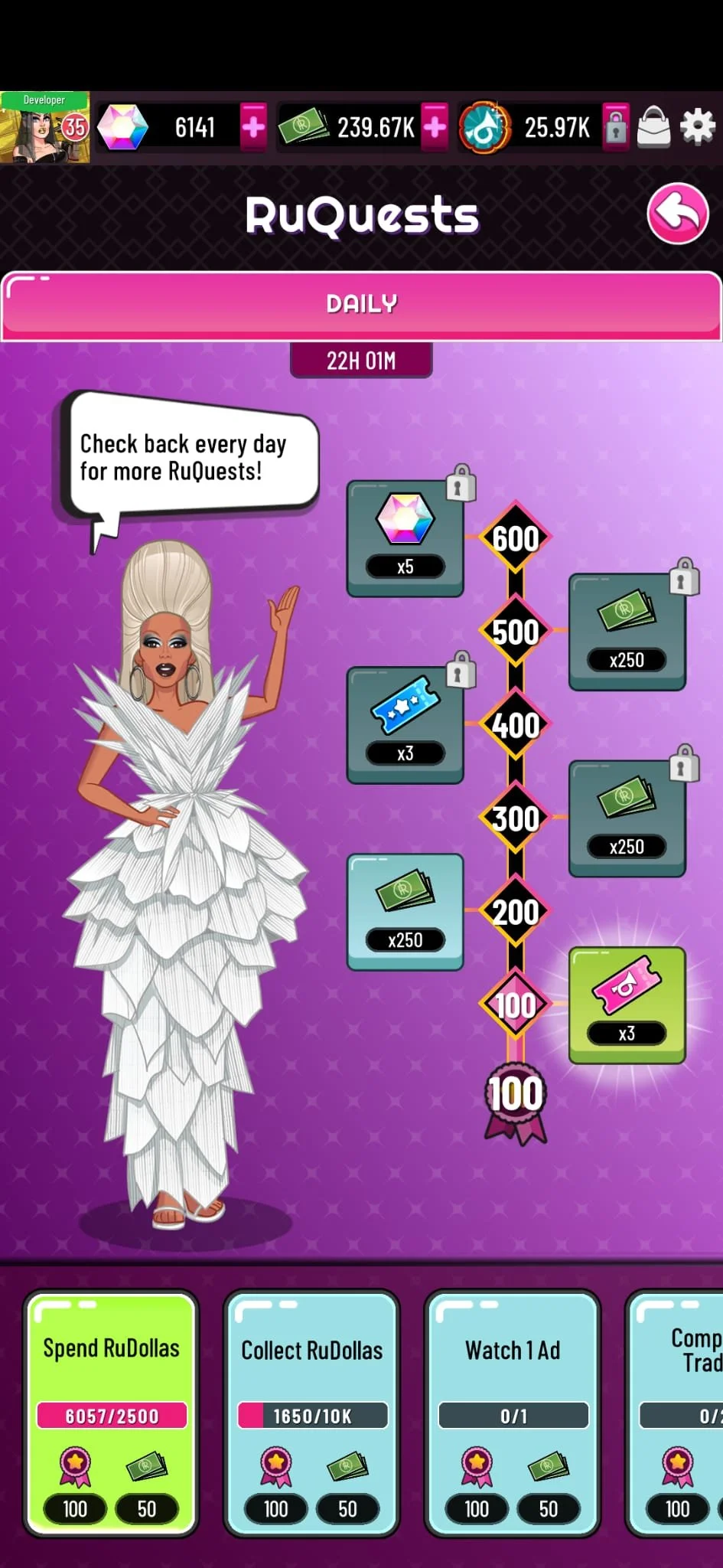 A player retention feature that’s used to encourage daily engagements to earn rewards. The feature was designed to be scalable, with future potential for Weekly RuQuests or Seasonal RuQuests.