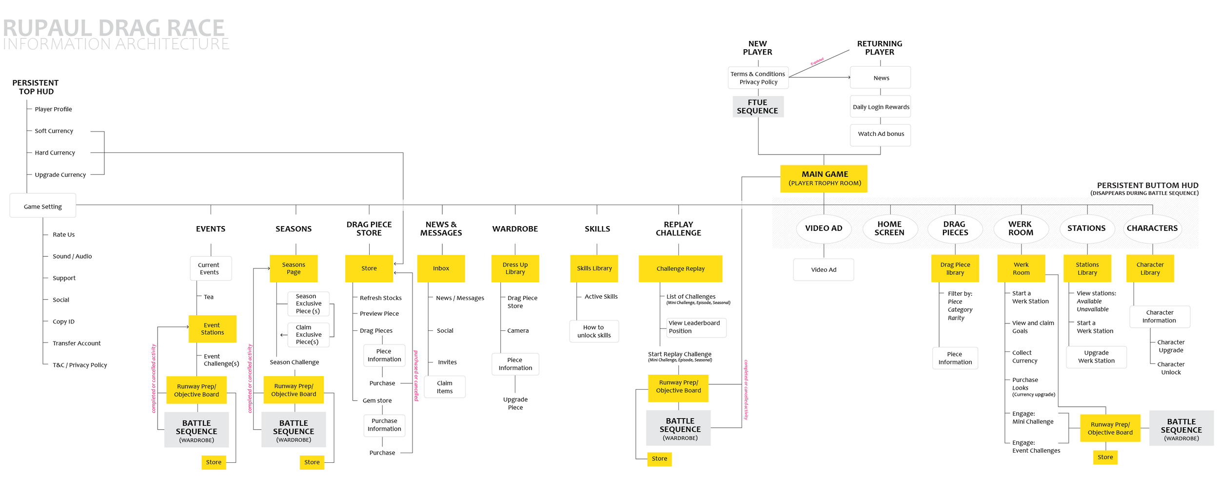 Mapping out the flows and area of the core gameplay was important, especially with two distinct playstyles: Idle and Fashion. It was established early on that the loop between the two modes needed to be obvious via the rewards which were granted, which encouraged players to switch modes periodically to keep gameplay fresh and engaging.